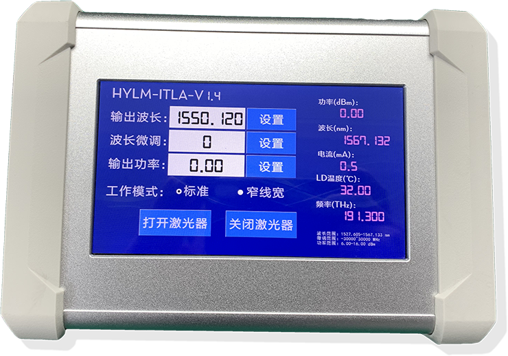 HYLM-ITLA-V可调谐窄线宽激光器具有高输出功率稳定性、高边模抑制比(SMSR)、超窄激光线宽、超高波长/功率控制精度等诸多优点。该产品把ITLA模块、通信转换接口、触摸屏和驱动电源集成在一起,摆脱了必须使用电脑进行控制的要求,在各种使用环境下,都可通过触摸屏实现功率、波长的设置和调整,界面简洁、操作简单、便于携带,适用于光纤通信、光纤传感等各个具体应用领域。