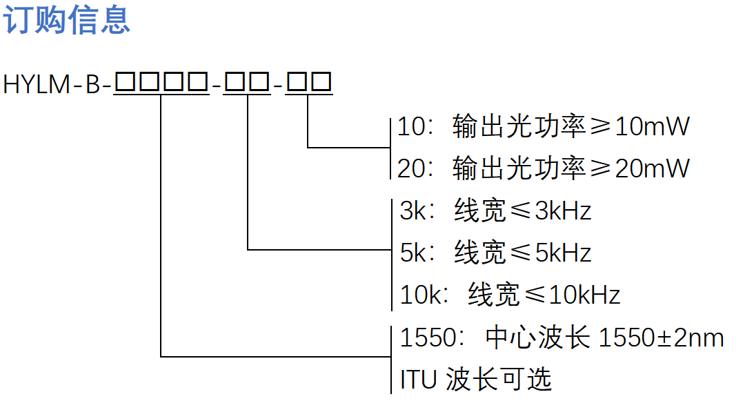 谱线宽度(kHz) | Δλ | CW,10mW | - | 5 | 10 |